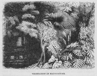 We were next bound to the coast of Madagascar, Captain Frankland having instructions to endeavour to open up a trade with the people, and to gain all the information he could collect regarding them. Madagascar is larger than Great Britain and Ireland combined, and contains three millions of inhabitants. In 1817, a treaty was entered into between the governor of the Mauritius and Radama, who was king of part of the country. The king consented to the abolition of the slave trade; and in return, he was supplied with arms and ammunition, and military instructors were sent to drill his army. The London Missionary Society also sent over a body of highly intelligent men, some to instruct the people in Christianity, and others more particularly in a variety of useful arts. A considerable number of Malagasy youths were sent on board English ships of war to be instructed in seamanship, while others were carried to England to receive a more finished education. It is a remarkable fact, that, although when the missionaries arrived in 1818 letters were totally unknown, in ten years from 10,000 to 15,000 natives had learned to read, many of them to write, and several had made some progress in English. This speaks well for the zeal and excellence of the system employed by the missionaries, and for the talent of the natives.