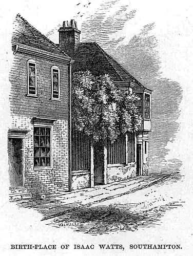 But perhaps the most interesting fact about Southampton is that Isaac Watts, the Christian poet, was born here in 1671. The house in French Street is still standing, and we went to look at it. There he passed his play-days of childhood; there the dreamy, studious boy stored up his first spoils of knowledge; there he wrote his first hymns; and thither he went to visit his parents, when he himself was old and famous. We also went to see the remains of Saint Michael’s Gaol, in which Watts’ father had been confined for his nonconformity.