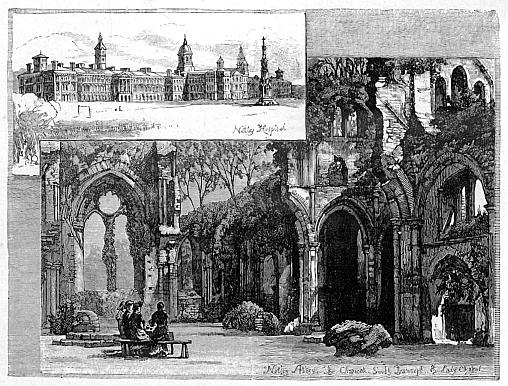 On leaving Nelson’s column, we proceeded along a road parallel with the river, having on our right the new barracks and on our left the Naval Hospital, which is placed in a fine airy situation, with the Denes in front and the sea beyond. It was here that Nelson, when the fleet came into Yarmouth, visited the poor wounded seamen, and going along the wards, spoke a kind word to each. It was by acts such as these that the admiral won the affection of his men, who