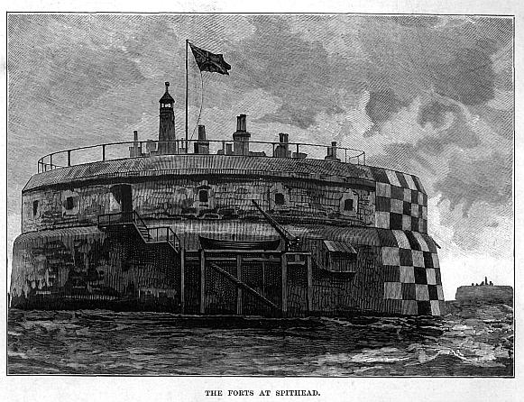 As we were anxious to see them, we had kept more in mid-channel than we should otherwise have done. We now hauled up for Portsmouth Harbour. Far off, on the summit of the green heights of Portsdown Hill, we could see the obelisk-shaped monument to Nelson, an appropriate landmark in sight of the last spot of English ground on which he stepped before sailing to fight the great battle of Trafalgar, where he fell. We could also trace the outline of a portion of the cordon of forts—twenty miles in length—from Langston Harbour on the east to Stokes’ Bay on the west. Along the shores, on both sides of the harbour, are two lines of fortifications; so that even should a hostile fleet manage to get by the cheese-like forts, they