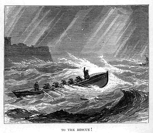 “Without a moment’s delay he plunged unto the surf, which three times carried him off his legs and sent him back on shore. Again he tried, and this time the sea drove him right against the wreck. The night was so dark that he had a hard matter to find out where the poor fellow was. At length he found a man clinging to the breastwork. The poor fellow told him that just before three men who had clung on until then had been washed away, and if he had come a few minutes sooner they might have been saved. As to swimming to shore, that he was certain was more than he could do. On this Sharman, taking the rope off himself, made it fast round the seaman’s waist, and shouted to Smith to haul in, while he himself trusted to his strong arms to hold onto the rope. They thus mercifully got safe to shore.”