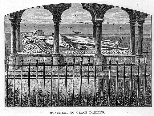 We had to steer our way among a vast number of tanned nets spread out to dry. Here and there fishermen and their wives and daughters were employed in mending those which had received damage. There must have been acres upon acres of these nets. We soon reached the column, which we found was erected by the inhabitants of the county to the memory of Lord Nelson, who was a Norfolk man. At the top of each side of the pedestal were the names of the hero’s chief victories. At the summit is a ball, on which stands the figure of Britannia holding a trident and a laurel wreath. The keeper invited us to enter; and we ascended by a flight of two hundred and seventeen steps to a gallery at the top of the column, the total height being one hundred and forty-four feet. From the platform we got a good bird’s-eye view of the town below us, and the country as far as Norwich, and a wide extent of ocean.
