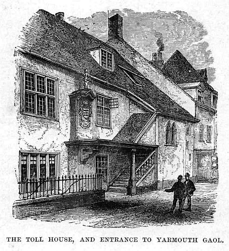 We were shown an ancient iron chest, called a hatch, in which the Corporation of Yarmouth kept their charters and valuable documents. Among the contents are the tallies or cleft sticks upon which the accounts were formerly kept, the stick being notched according to the amount of money advanced, one part being given to the creditor, and the other to the debtor. The same plan is used in the present day by the hop-pickers in Kent, the overseer having one stick, while the picker keeps the other, and notches it each time a basket is emptied. Beneath this Toll House is the ancient Gaol or House of Correction. Up to the present century this gaol was as defective as that of prisons generally. Under the ground is an apartment called the hold, with iron rings fixed to a heavy beam of wood crossing the floor. To this beam—in olden times—prisoners were wont to be chained. The sufferings of these unfortunate persons stirred up the heart of a Christian woman, Sarah Martin, residing in Yarmouth. Though compelled to support herself as a dressmaker, she devoted much of her time, as did John Howard and Elizabeth Fry, to visiting her suffering fellow-creatures. For twenty-four years she thus laboured, visiting day after day the prisoners and malefactors in the town gaol. There was no one on earth to reward her, no one to thank her; but she trusted in God, and gave Him the praise that she was thus able to labour in His service. By her instrumentality many who were looked upon as hardened wretches by their fellow-men were brought to the foot of the cross as penitent sinners. When she lay dying, a friend asked, “What shall I read?” her answer was one word, “Praise.” To the question, “Are there any clouds?” she answered, “None: He never hides His face; it is our sins which form the cloud between us and Him. He is all love, all light.” And when the hour of her departure was come, her exclamation was, “Thank God! thank God!”