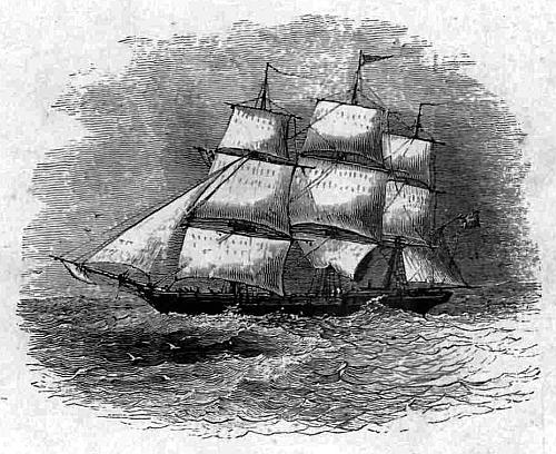 On reaching the station at Southampton, we found Paul Truck, the sailing-master of the cutter, or the captain, as he liked to be called, waiting for us, with two of the crew, who had come up to assist in carrying our traps down to the quay. There was the boat, her crew in blue shirts, and hats on which was the name of the yacht. The men, who had the oars upright in their hands while waiting, when we embarked let the blades drop on the water in smart man-of-war style; and away we pulled for the yacht, which lay some distance off the quay.