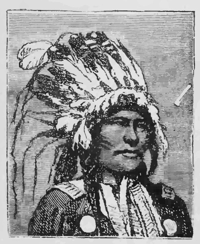When he had finished, the chief rose and made a long speech, excusing himself and his tribe on the plea that the Long-knives had been the aggressors; that they had killed their people, driven them from their hunting-grounds, and destroyed the buffalo on which they lived. No sooner did the chief begin to speak than Uncle Donald recognised him as a Sioux whose life he had saved some years before. He therefore addressed him by his name of Ponoko, or the Red Deer, reminding him of the circumstance. On this the chief, advancing, embraced him; and though unwilling to acknowledge that he had acted wrongly, he expressed his readiness to follow the advice of his white friend. He confessed, however, that his hand had only one captive, a little girl, whom he was carrying off as a present to his wife, to replace a child she had lost. “She would be as a daughter to me; but if my white father desires it, I will forego the pleasure I expected, and give her up to him. As for what the rest of my people may determine I cannot be answerable; but I fear that they will not give up their captives, should they have taken any alive,” he added.