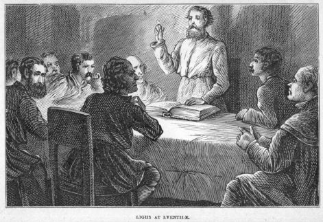 “I thank you for your advice, cousin. I must confess, however, that I do not hold the opinion you express of the Protestants, but on the contrary, am greatly inclined to agree with their principles. I lately heard a wonderful preacher, one John Knox, who has appeared in Scotland, and brought thousands to see the gross errors of the papal system. He proves clearly that the Pope of Rome has no real ground for his pretensions to be the head of Christ’s Church on earth; that he cannot be the successor of the apostle Peter, who never was Bishop of Rome; but that he is rather the successor of the great heathen high priest, whose idolatries he perpetuates and supports, and that therefore he and his cardinals and priests are impostors, who should on no account be obeyed. He clearly explains indeed that those who rule in the Seven-hilled city represent no other than the Scarlet Woman spoken of in the Apocalypse, their system being in truth the Mystery of Iniquity.”