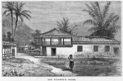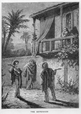 We had no difficulty in procuring a couple of guitars. Juan took one, Mr Laffan the other, and as soon as it began to grow dark we set out. We soon approached the front of Dona Dolores’ residence. It was a two-storied building, with a balcony on one side overhanging the road some little way from the entrance-gate.