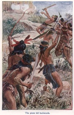 But even now our danger was fearful. On came the fire, on came the stream of lava. We had still a long way to go, it seemed. The rest of the party, not knowing what had occurred, had already got to some distance. We rushed after them at increased speed. Poor Grace could scarcely support herself, but I helped her along. At length we overtook our friends. “On, on!” cried Mr Sedgwick, every now and then turning back and pointing towards the beach, much as an officer might encourage a forlorn hope, only we were flying from danger instead of running into it. The fire seemed scarcely a hundred yards from us, and already we felt the heat of the advancing conflagration. At length the bay opened out before us, but the fire was by this time close on one hand, and the flames were curling up some tall palms which we the instant before had passed. Crash followed crash as the trees sank before the devouring element. Already it had gained the edge of the path and ignited the wood on the opposite side. We had to pass under an arch of fire. I entreated Oliver to keep close behind us. He and Macco sprang forward. At that moment there came a crash, and a tall tree fell directly behind them, cutting off the mate and boatswain. It was no time to stop, however. I felt this for my companion’s sake, and I know not, even if I had been alone, that I should have ventured to turn back to help them.