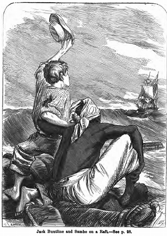 On sailed the boat. The black was the only person who kept his eyes constantly moving about him. He might have suspected treachery. Suddenly his whole manner seemed changed. He jumped to his feet clapping his hands. “A sail—a sail,” he cried. Then he sat down and wept. All looked eagerly in the direction towards which he pointed. A large barque was crossing their course, but how could they hope that a small boat could be seen by the people on board at that great distance? They got out the oars, but their strength was insufficient to go through the movements of rowing, much less to urge on the boat. All they could do was to sit still and wait, watching with intense eagerness every movement of the stranger. Picture them at this juncture. On, on they sailed. Every one felt that if they missed the vessel their fate was sealed. A simultaneous groan escaped their bosom. She altered her course, and was standing away from them. One of the men threw himself down into the bottom of the boat, prepared to die. Still Jack kept his eye on the barque. “See—see dere!” exclaimed Sambo. The barque had hove to. Why, they could not tell, at the distance she was away. She had done so without reference to them. Perhaps some one had fallen overboard. How anxiously did they wait!