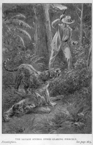 While I was gnawing away at the leg of the monkey, and looking out at the same time into the darkness below, I saw something move across an open glade. It came nearer, and stopped at a spot where the moonbeams streamed full upon it, when I saw that it was a large jaguar. He sat upon his hind-legs and looked at us very wistfully, as if he should like to secure one of us for supper. Presently he moved again and came a little nearer, when he sat down to look at us as before. I was going to have a shot at him, but Manco restrained me, observed that it might be heard by the Cashibos, and lead them to us. Still the jaguar crept nearer, and once more stopped to watch us. If he was hungry, we must have been very tempting to him. Our Indians at last thought it was no joke, for in another moment the jaguar might have picked one of us off; so they set up so loud a scream that they made him turn about in a fright, and scamper off into the forest. As this would to a certainty have led the Cashibos to us, if they were in the neighbourhood, we once more mounted and continued our journey. Sometimes I thought I heard the savages behind us; but the sound proved to be the cry of some bird or beast of prey.