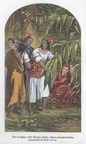 We were soon seated around the missionary’s hospitable board, for Captain Hudson’s ship was well-known, and Mrs Arnold had been preparing for the guests she was sure would come before they left the Pacific. She was an interesting looking lady, but there was an expression of sadness in her countenance, which at once struck me. Our host and hostess had, of course, many questions to ask, and we gave them an account of the dreadful events which had occurred to us. Captain Hudson told them of his wish to carry us on with him to England.