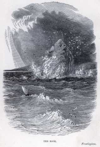“The day wore on, the wind veered a few points to the nor’ard, and the sun burst out now and then from among the clouds, and, just as we were giving up all hope, his light fell on the sails of a boat which had just before put off from the shore. She breasted the waves bravely. Was she, though, coming towards us? We could not have been seen so far off. Still on she came, the wind allowing her to be close-hauled to steer towards the rock. The tide meantime was rapidly rising. If she did not reach us soon, we knew too well that the sea would come foaming over the rock and carry us away.