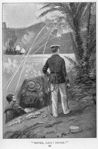 “Let fall the topsails, hoist away—up anchor, round goes the capstan—sheet home—haul taut the braces! and away we glide, to prove to our countrymen that British sailors have not been sleeping on beds of roses for the last quarter of a century since her gracious Majesty Queen Victoria came to the throne.” So wrote our author some forty years ago. “Up anchor, full speed ahead,” is, we suppose, the modern equivalent for his nautical simile, and very prosaic and commonplace it sounds; but we shall find that the romance of the Navy did not go out with the last of the sailing frigates, and that the age of steam and electricity, of enormous ironclads and rapid cruisers, affords as great a scope for individual daring, resource, and heroism as the days of sailing frigates and boarding parties; and that though in recent years our sailors have not had many chances of using their weapons on the sea, the Naval Brigade has taken its part in many an expedition, on land, and on all occasions the British tar has proved himself a worthy successor to the heroes of Trafalgar and the Nile.