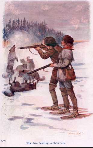 Shouting at the top of my voice in order to scare them, I fired at the leader of the pack, and knocked it over; but before I could reload, the savage animals were close upon me.