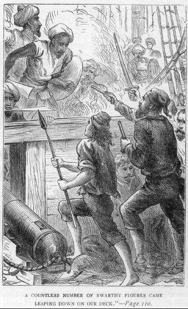 Our seamen, regardless of the savage war we had lately waged with the Hollanders, hurried to lower down ropes and to drag the swimmers on board. Scarcely were they all on deck than the Algerine boats came alongside, and the Moors demanded the fugitives, affirming that they were their own runaway slaves.