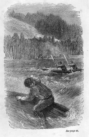 In a few minutes Philip was sitting wrapped up in a sheet and blanket before the almost red-hot stove of the log-hut, y-clept an hotel, while Mr Job Judson was administering a stiffer tumbler of rum-and-water than Philip had ever before tasted, probably, though it appeared to him no stronger than weak negus. Believing this to be the case he did not decline a second, the effect of which was to throw him into a glow and to send him fast asleep. Meantime his clothes, hung up round the stove, were drying rapidly; and when the landlord at last aroused him to put them on, he found that they were, as he said, as warm as a toast; indeed they were, he had reason to suspect, rather overdone. He found Mr Norman with a large dug-out canoe on runners, with a couple of poles, one on each side, and two men who had volunteered to accompany him.