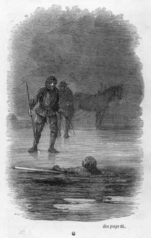 It was a sad fate which seemed about to overwhelm him. Life had many charms in spite of the one disappointment, which had, rather given a gravity to his manner than in any way embittered his existence. He had hoped to do something in the world—his duty, at all events. He had many too depending on him. How would they bear his loss? He looked upward. A thick veil hung over his head. Below was the dark water—on every side the wide expanse of treacherous ice and snow. His limbs were getting chilled; still he would struggle on while consciousness was allowed him. Had the hole been smaller into which he had fallen, he might have got his pole across it. It was, however, of much assistance, as holding on to it, he could rest without breaking the edge of the ice. He was certain that he heard sleigh-bells. He shouted louder than before. The bells ceased. He instantly shouted again. A voice replied, “We’ll be with you directly, friend.” His heart leaped within him. The voices sounded louder. He discerned objects dimly moving over the ice, here and there. They must be looking for him. He shouted again. They resolved themselves into the forms of two men.