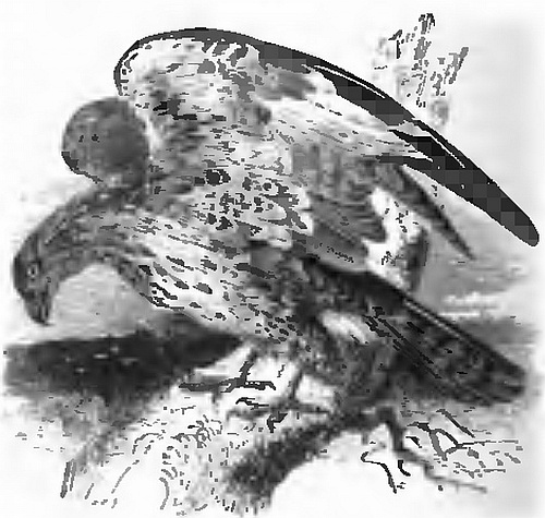 For several days the weather was fine, and we went on smoothly enough—camping at night on convenient spots. To prevent accidents, we unloaded our raft, placed the goods in the centre of the camp, and drew up our canoes. On the fourth night of our voyage, Ready, who was our most vigilant watcher, suddenly broke into a loud bark, and started towards a copse close to us. I sprang to my feet; so did Peter, who said that he saw a dark form moving among the trees. Whether it was a bear or a human being he could not tell. Whatever it was, it made its escape before Ready could come up with it, and I called him back lest he should be injured if allowed to be without support. Of course, the whole camp was aroused. Two scouts crept out cautiously, but could discover nothing, and the opinion was, that some small animal had aroused Ready and that Peter’s imagination had conjured up the figure in the wood. I thought it better, however, to keep on watch during the remainder of the night. Ready was far from easy, and several times started up and uttered low growls and short shrill barks.