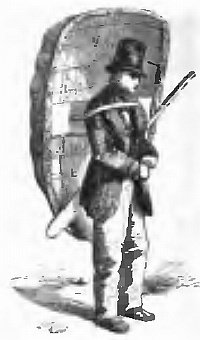 Such was the case with our friend Habakkuk Gaby. The day after our arrival, we saw him wheeling a barrow about, up and down hill, stocked with a variety of small wares such as he well knew miners would value. Whether he sold or not, he stopped and had a talk with all he met, picking up a little bit of information from one and a little bit from another. His former experience in California enabled him to ask questions likely to procure what he required. For several days he patiently continued at this occupation. At last, one evening, Trevor and I received a visit from him.
