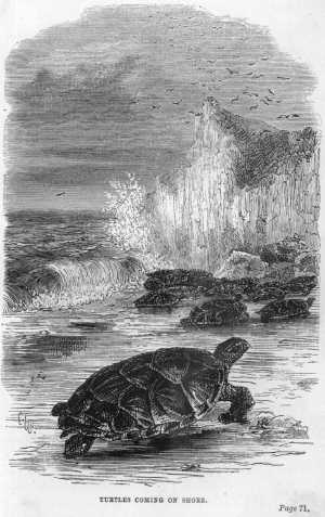 “Having his gun and ammunition, he was able to shoot some birds and animals, and with the fruits he found growing on the trees he sustained life. Thus for three days more he wandered up and down, till he at length reached the river; when to his dismay, he could nowhere see the ship. Having no doubt that she had sailed, he now set off along the shore, hoping to overtake her in case she had brought up at any other place. He was pushing on bravely, when he saw before him a large party of Indians; to fight with them was useless—he held out his hand, which the chief took, and showed by signs that he would be his friend. He tried to inquire for the ship, but the Indians made him understand that she had gone away and that it was best for him to remain with them. He thought so likewise, and agreed to live with them, and to hunt and fish as they did.