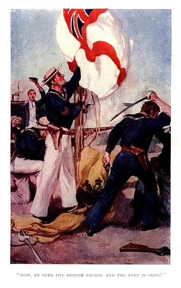 Crossing the Equator—Billy Blueblazes looks out for the Line, but does not see it—He and Gerald mastheaded—Tristan d’Acunha: Jos Green, as usual, “meets with a Friend”—The Opal at the Cape—Sails for Madagascar—Commodore Douce of the Radiant—A Boat Expedition up the Angoxa River—The Slavers’ Stronghold—Mildmay’s Sonnet interrupted by the Guns of the Fort—Attack on the Slave-Dhows—The Commodore is landed by Tom Bashan—Capture of the Fort—Crossing the Bar.