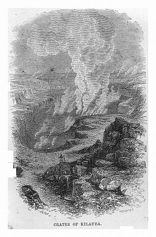 Kapoiolani told him that at times the lake which they saw below them rose up high above the cones, filling the whole space within a hundred feet of the edge with a sea of liquid lava, and that it occasionally burst its way through the edges, carrying destruction in its course, towards the ocean, while at other times new cones arose in the side of the mountain, through which the lava burst its way, flowing down in all directions.