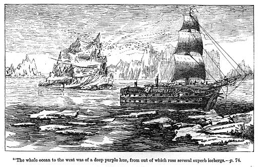 “I propose taking the short circle on our voyage eastward,” said Commander Newcombe to Colonel Morley. “We may experience somewhat cold weather; but, at this time of the year we may hope to escape heavy gales, and it is important, with so many men on board, to make a quick passage. If, too, our water should run scarce, we may obtain a supply from the icebergs, with which it is not impossible we may fall in now and then.”