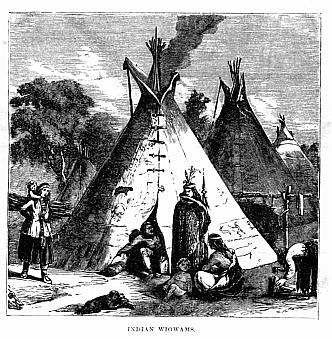 Here and there, in openings in the primeval forest, either natural or artificial, on the banks of streams and lakes, several small conical structures may be seen, composed of long stakes, stuck in the ground in circular form, and fastened at the top.