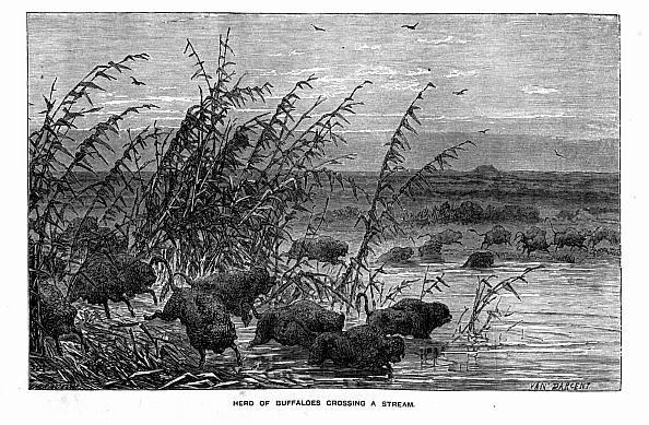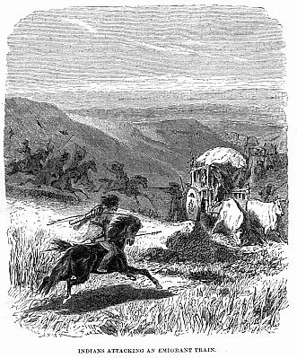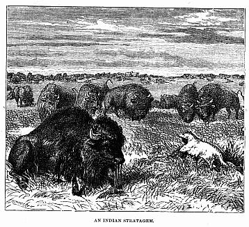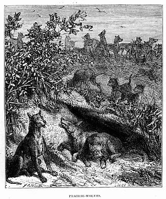 The Grand Coteau de Missouri forms a natural boundary to these arid plains. This vast table-land rises to the height of from 400 to 800 feet above the Missouri. Vegetation is very scanty; the Indian turnip, however, is common, as is also a species of cactus. No tree or shrub is seen; and only in the bottoms or in marshes is a rank herbage found. Across these desert regions the trails of the emigrant bands passing to the Far West have often been marked: first, in the east, by furniture and goods abandoned; further west, by the waggons and carts of the ill-starred travellers; then by the bones of oxen and horses bleaching on the plain; and, finally, by the graves, and sometimes the unburied bodies, of the emigrants themselves, the survivors having been compelled to push onwards with the remnant of their cattle to a more fertile region, where provender and water could be procured to restore their well-nigh exhausted strength. Oftentimes they have been attacked by bands of mounted Indians, whose war-whoop has startled them from their slumbers at night; and they have been compelled to fight their way onwards, day after day assailed by their savage and persevering foes.