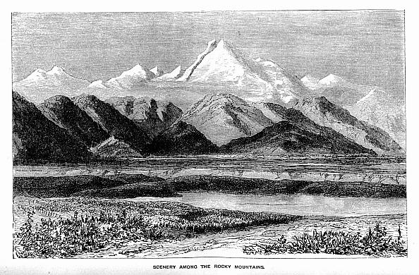 On the prairies of the east the eye ranges over a wide expanse of waving grass, everywhere like the sea. As, crossing the plains, we proceed west towards the vast range of the Rocky Mountains, the country gives evidence of the violent and irregular disturbances to which it has been subjected. Wild rocky ridges crop out from the sterile plains of sand; and for hundreds of miles around the country is desert, dry, and barren. Even the vegetation, such as it is, is of the same unattractive character. The ground here and there is covered with patches of the grey gramma grass, growing in little cork-screw curls; and there is a small furzy plant, the under sides of the leaves of which are covered with a white down, while occasionally small orange-coloured flowers are seen struggling into existence.