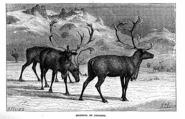 Arriving at the northern end, we shall find it reaching some four degrees north of the Polar Circle, though some of its headlands extend stilt further into the icy sea. Beyond it stretches away to an unknown distance towards the Pole a dense archipelago of large islands, the narrow channels between them bridged over in winter by massive sheets of ice, affording an easy passage to the reindeer, musk-oxen, and other animals which migrate southward during the colder portion of the Arctic winter.