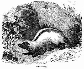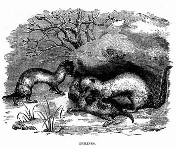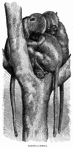 Nearly related to it, and inhabiting the same region, is the chinchilla—a pretty little creature, rather larger than a squirrel, with great brilliant eyes, an erect tail, strong bristles on the upper lip, and rounded, almost naked ears. Its beautifully soft fur is much valued by ladies in Europe. It covers in certain districts the slopes of the Andes with its burrows, which trip up many an unwary horseman—greatly to its surprise and alarm, as its only object in forming them is to have a quiet home of its own, where it can bring up its young, and enjoy the roots which it collects, and on which it feeds at its leisure.