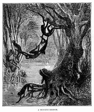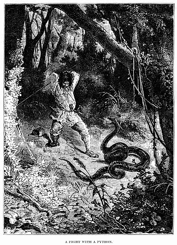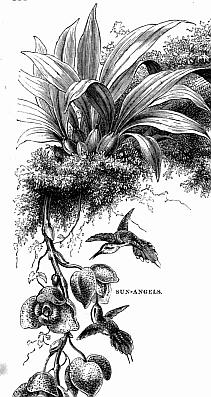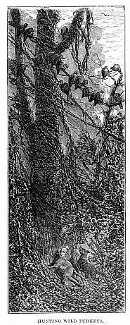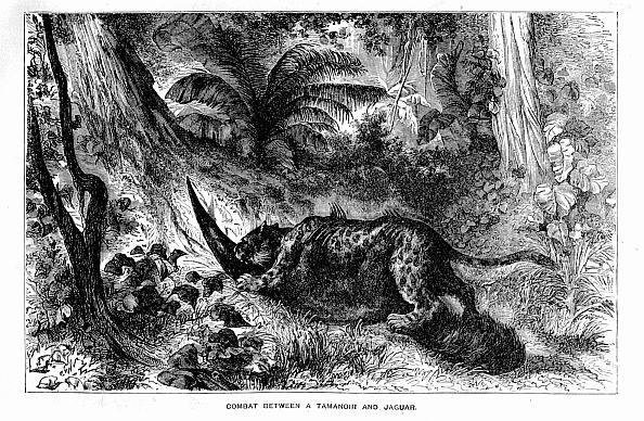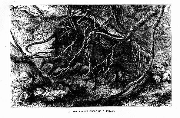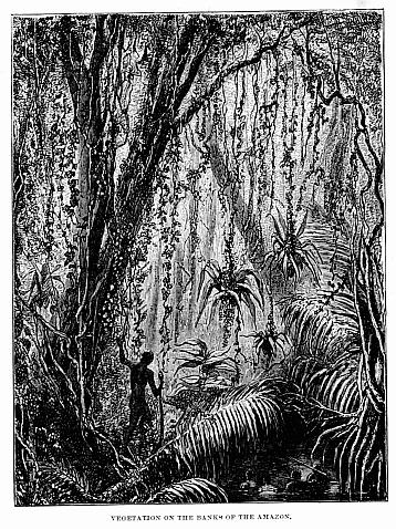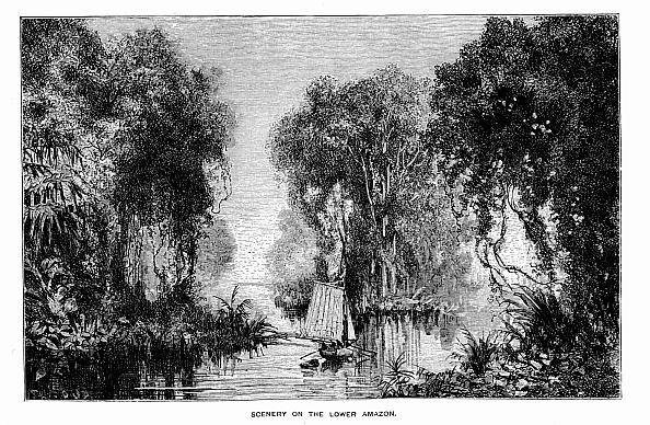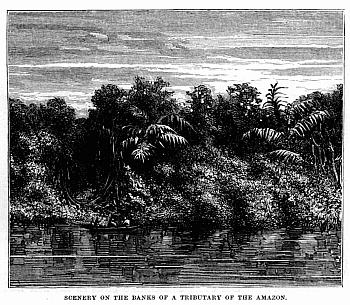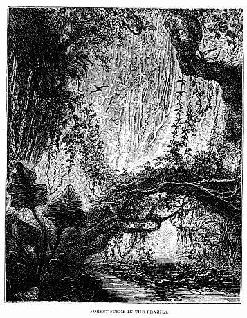 I have first described the features of the country; then its vegetation; and next the wild men and the brute creatures which inhabit it. However, I have not been bound by any strict rule in that respect, as my object has been to produce a work calculated to interest the family circle rather than one of scientific pretensions. I have endeavoured to impart, in an attractive manner, information about its physical geography, mineral riches, vegetable productions, and the appearance and customs of the human beings inhabiting it. But the chief portion of the work is devoted to accounts of the brute creation, from the huge stag and buffalo to the minute humming-bird and persevering termites,—introduced not in a formal way, but as they appear to the naturalist-explorer, to the traveller in search of adventures, or to the sportsman; with descriptions of their mode of life, and of how they are found, hunted, or trapped. I have described in the same way some of the most remarkable trees and plants; and from the accounts I have given I trust that a knowledge may be obtained of the way they are cultivated, and how their produce is prepared and employed. Thus I hope that, with the aid of the numerous illustrations in the work, a correct idea will be gained of the wilder and more romantic portions of the great Western World.