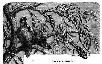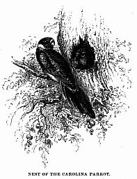 A small green parrot, with a grey breast, frequents the banks of the Parana. It builds on the higher branches of the taller trees.