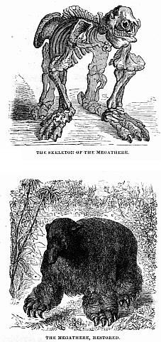 This celebrated bog is situated in a nearly level plain, bounded by gentle slopes, which lead up to wide-extended table-lands. In the spots where the salt springs rise, the bog is so soft that a man may force a pile into it many yards perpendicularly. Some of these quaking bogs are even now more than fifteen acres in extent, but were formerly much larger, before the surrounding forest was partially cleared away. Even at the present day cows, horses, and other quadrupeds are occasionally lost here, as they venture on to the treacherous ground. It may be easily understood, therefore, how the vast mastodons, elephants, and other huge animals lost their lives. In their eagerness to drink the saline waters, or lick the salt, those in front, hurrying forward, would have been pressed upon by those behind, and thus, before they were aware of their danger, sank helplessly into the quagmire. It is supposed that the bones of not less than one hundred mastodons and twenty elephants have been dug up out of the bog, besides which the bones of a stag, extinct horse, megalonyx, and bison, have been obtained. Undoubtedly, therefore, this plain has remained unchanged in all its principal features since the period when these vast extinct quadrupeds inhabited the banks of the Ohio and its tributaries. Here and there the Big-bone Lick is covered with mud, washed over it by some unusual rising of the Ohio River, which is known to swell sixty feet above its summer level.