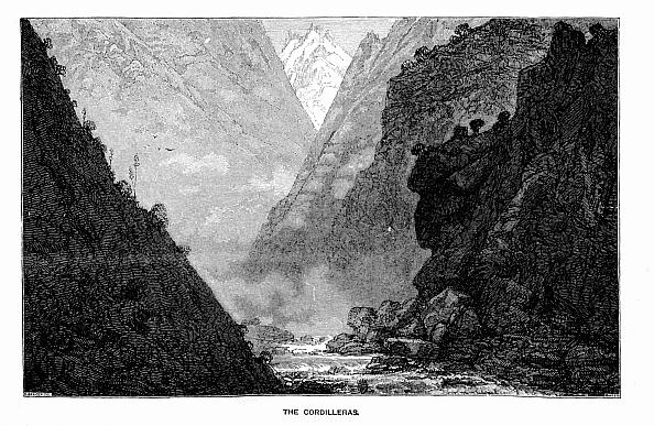 Beyond this region of thistles is a second wide district, which produces long grass, changing only, according to the season, from green to brown; while beyond it, again, is a third region, reaching to the base of the Cordilleras, and mostly covered with thick groves of low trees and evergreen shrubs, with here and there streams passing amid them.