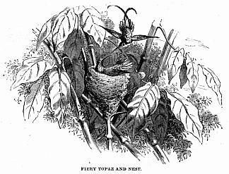 Of the genus Furnarius there are several species. The best-known is the oven-bird of La Plata—the casara, or house-maker, of the Spaniards. It builds its nest in an exposed situation, on the top of a vast bare rock or cactus. It is composed of mud and bits of straw, and has strong, thick walls—its shape being precisely that of an oven, or depressed bee-hive. The opening is large and arched, and directly in front. Within the nest there is a partition which reaches nearly to the roof, thus forming a passage or ante-chamber to the true nest.