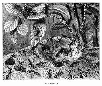 There are insects, however. Ants swarm in all directions, building cones a foot in height. Grasshoppers in myriads, with red wings and legs, fly through the air—the only bright objects in the landscape. Sometimes the reddish-brown cricket is seen. Even the Platte River, which flows through this region, partakes of its nature. It seems to consist of a saturated solution of sand: when a handful is taken up, a grey mud of silex remains in the palm. Dry as this gramma grass appears, it possesses nutritive qualities, as the animals which feed on it abundantly prove.