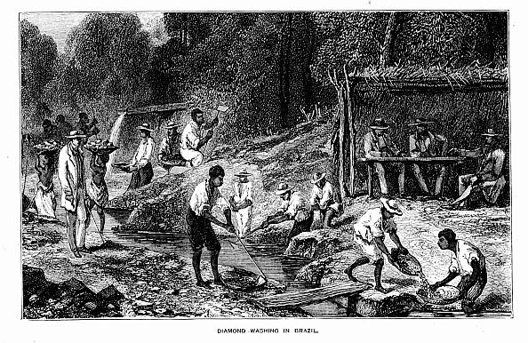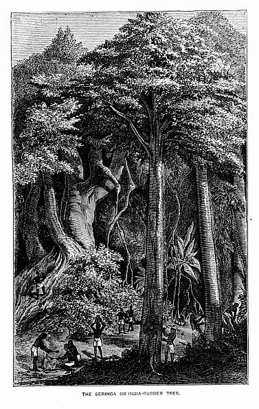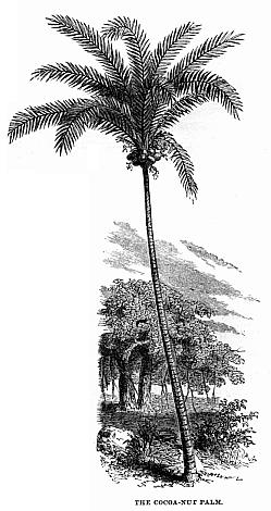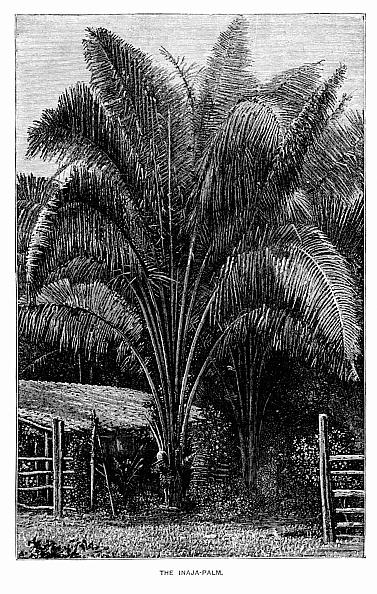 The natives spin the indigenous cotton of the country, and weave it in a curious way, producing the most intricate lace and needlework. The thread they manufacture is remarkably fine and strong. Weavers travel about the country carrying their simple looms on their shoulders, and may be seen under an orange-tree by the roadside, the warp-roller suspended from a bough and balanced beneath by stones, the workman seated on a horse’s skull, and producing a fabric as beautiful as it is durable.