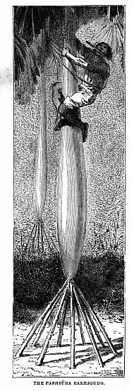 Their great delight is smoking—from a pipe made of stone, fashioned into the shape of a small bowl, in which a long tube is fixed. Each man takes a pull at the pipe and sends it round, gulping in a huge quantity of vapour, all the muscles of the body seeming in a fierce convulsion of straining; and while his neighbour is apparently employed in an effort to gulp down the whole apparatus, there issues from the nose and mouth of the first smoker a cloud which quickly renders his face and all around him invisible.
