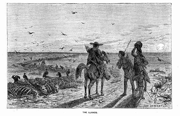 The tracks across it are marked by the whitened skeletons of the horses and bullocks which have succumbed to the fatigues of the journey, or the want of water, and have been picked clean by the carranchas, and others of the vulture tribe, or by the active teeth of the voracious little armadillos, which clear away the refuse of the feast left by their feathered companions. Here and there forts or post-houses are found, garrisoned by the wild Gauchos—their appearance in keeping with the scenery.