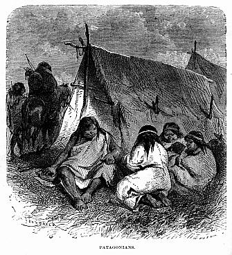 The chief tribe of Patagonians who inhabit the region as far south as the Strait of Magellan, go under the name of Pehuenches—men of tall and muscular stature, with thick black hair, high foreheads, and broad faces, but in no way