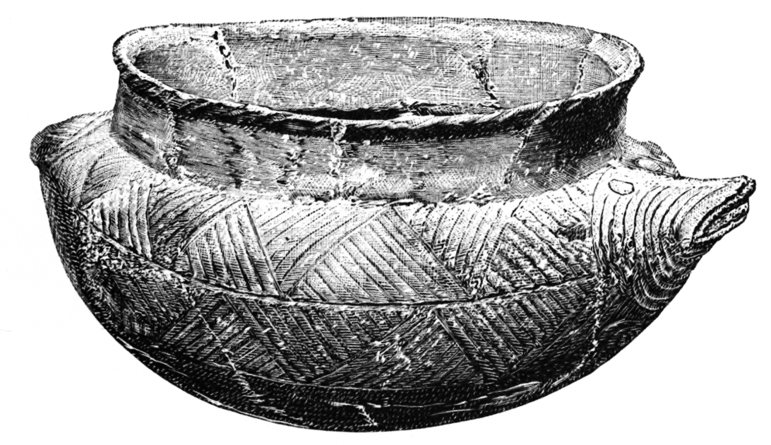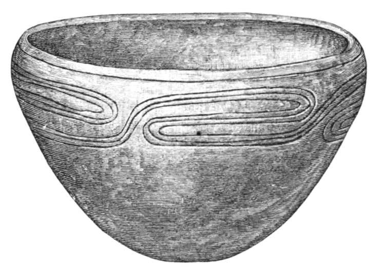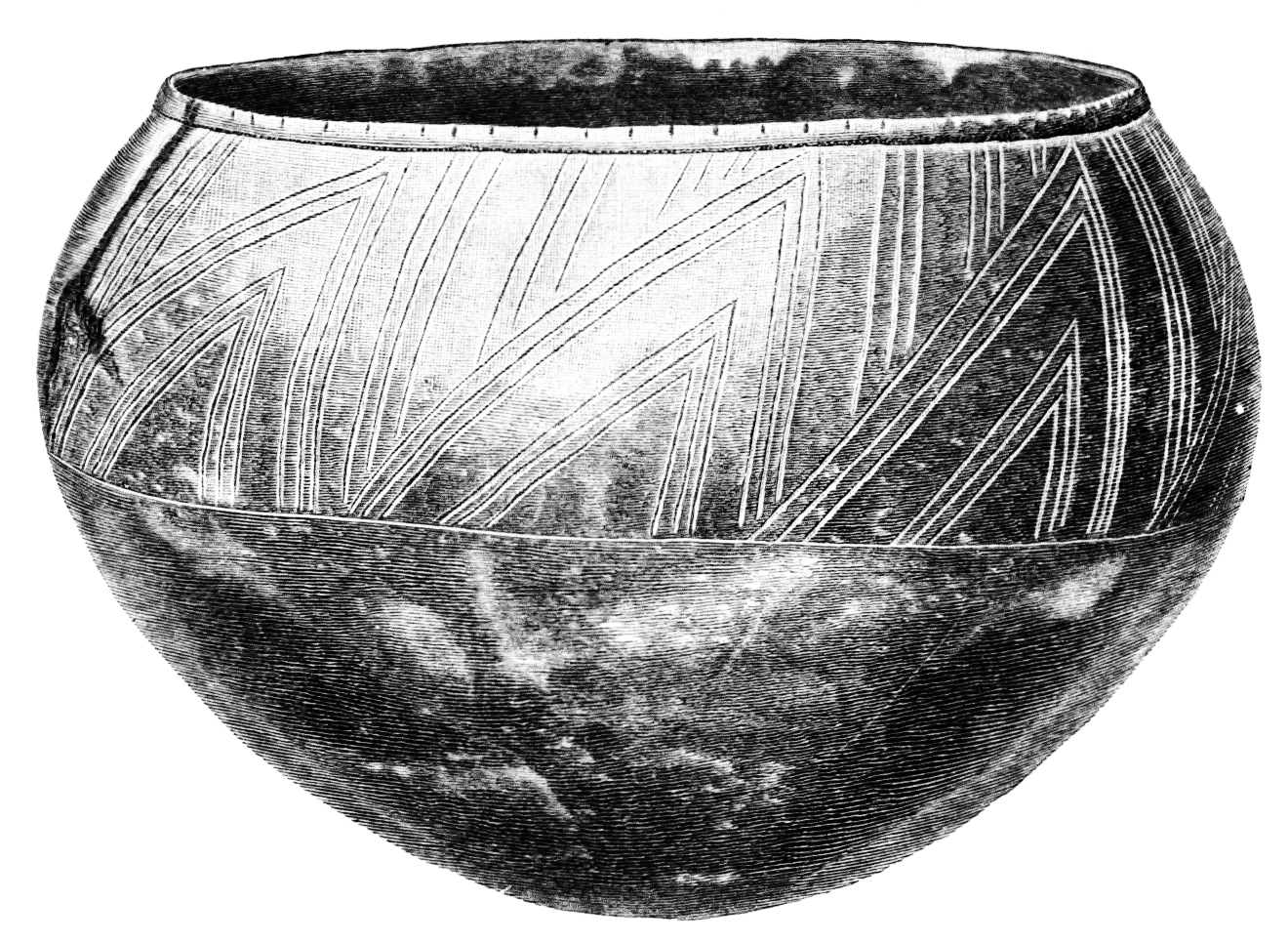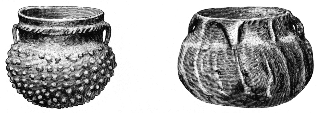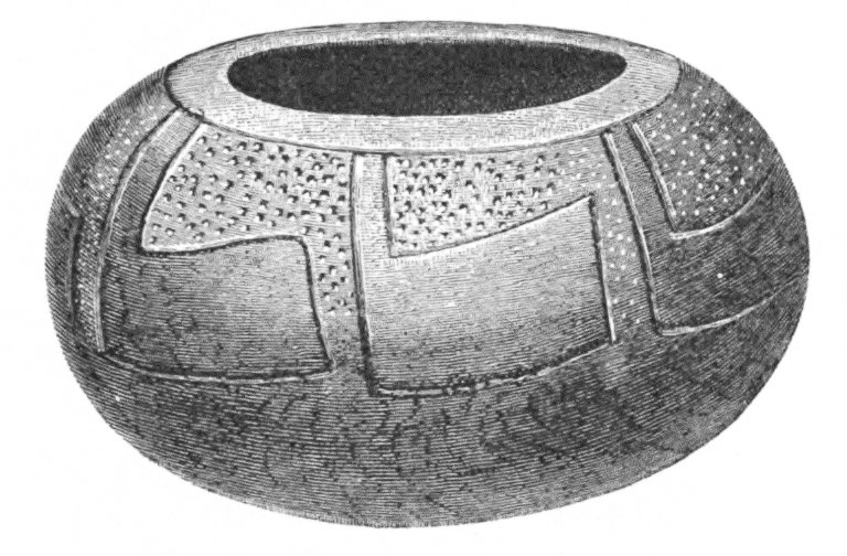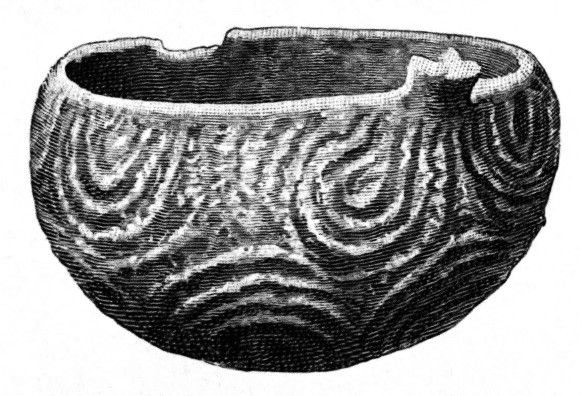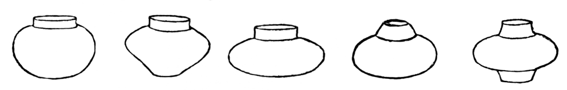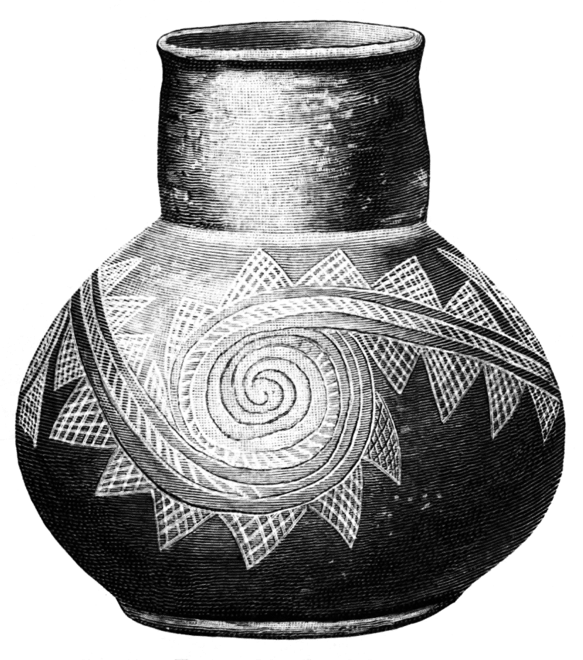 A feature worthy of especial note is the great diversity of form—indicating a long practice of the art, a high specialization of uses, and a considerable variety in the originals copied. The manual skill exhibited is of no mean order. Symmetry of form combined with considerable grace of outline has been achieved without the wheel—a result attained in still greater perfection by other American races. Notwithstanding the great diversity of the forms of vessels, the very primitive condition of the art is indicated by the absence of bricks, tiles, whistles, lamps, spindle-whorls, toys, and statuettes. The models from which the vessels were copied must have been quite varied, comprising shells of mollusks—marine and fresh-water—gourd shells of varying shapes, and vessels of wicker, bark, horn, and wood, such as are in common use with our western and northern tribes.