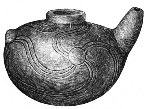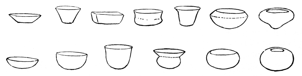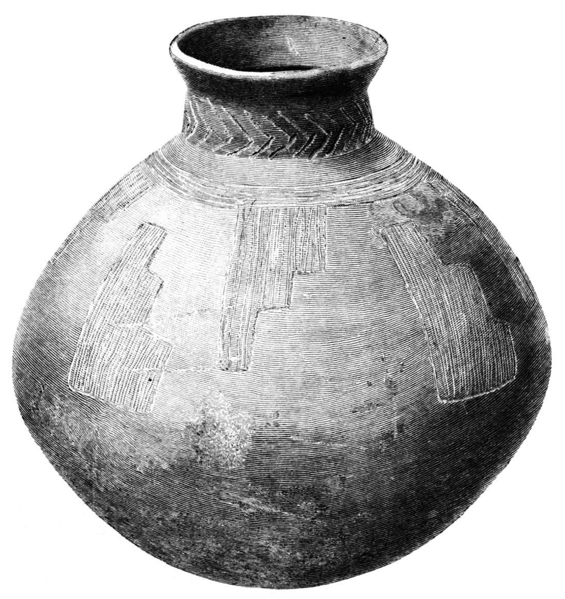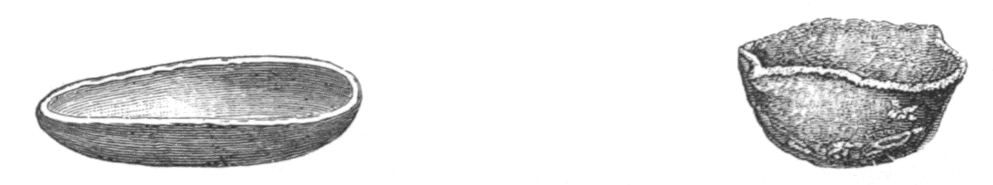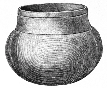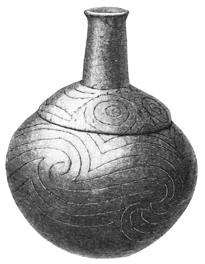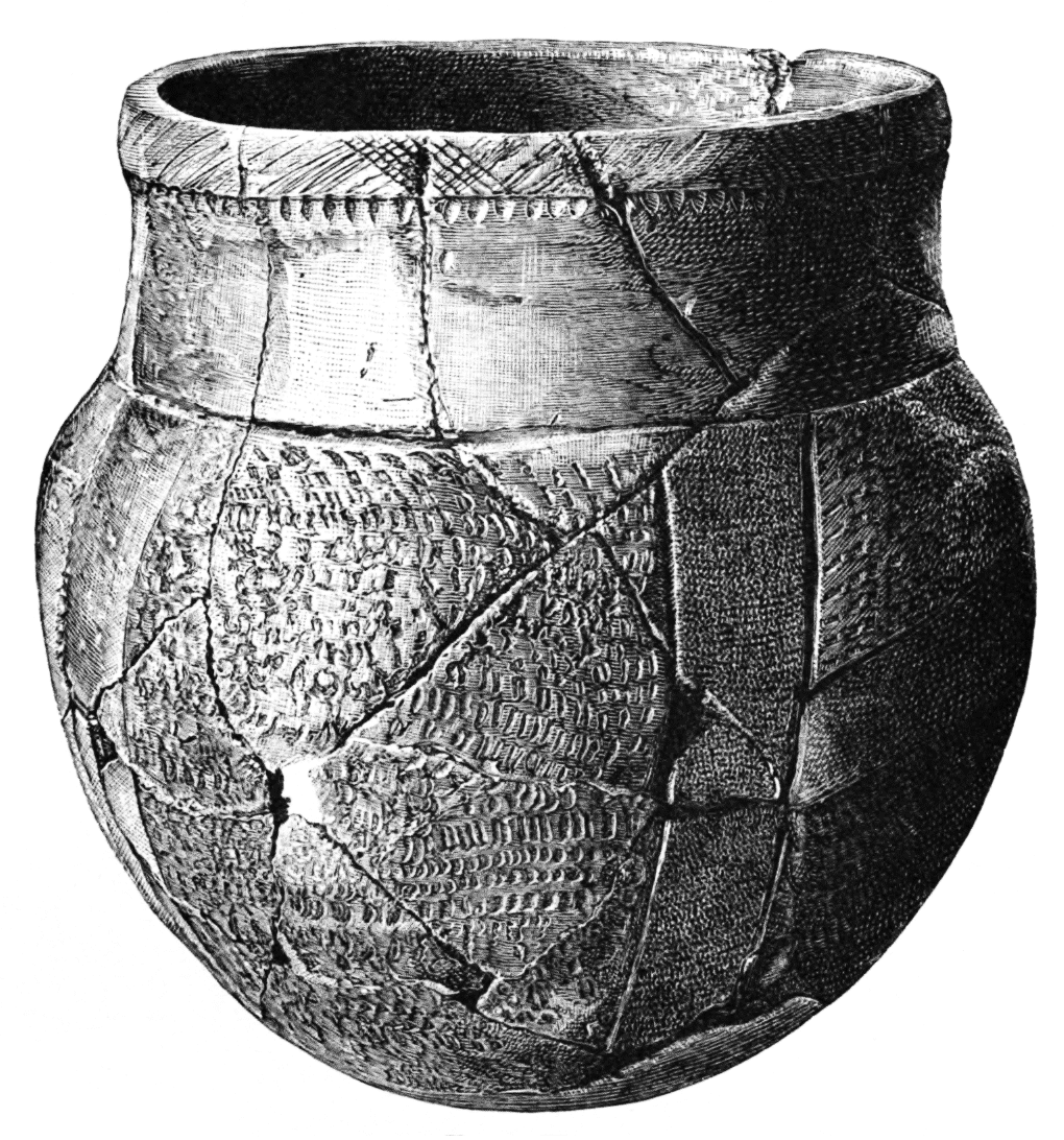 A feature worthy of especial note is the great diversity of form—indicating a long practice of the art, a high specialization of uses, and a considerable variety in the originals copied. The manual skill exhibited is of no mean order. Symmetry of form combined with considerable grace of outline has been achieved without the wheel—a result attained in still greater perfection by other American races. Notwithstanding the great diversity of the forms of vessels, the very primitive condition of the art is indicated by the absence of bricks, tiles, whistles, lamps, spindle-whorls, toys, and statuettes. The models from which the vessels were copied must have been quite varied, comprising shells of mollusks—marine and fresh-water—gourd shells of varying shapes, and vessels of wicker, bark, horn, and wood, such as are in common use with our western and northern tribes.