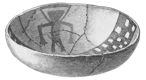 Material.—Nature was lavish in her supply of the material needed. Suitable clay could be found in nearly every valley, both in the well-exposed strata and in the sediment of streams. I have noticed that after the passage of a sudden storm over the mesa country, and the rapid disappearance of the transient flood, the pools of the arroyos would retain a sediment of clay two or three inches thick, having a consistency perfectly suited to the hand of the potter. This I have taken without tempering and have made imitations of the handsome vases whose remnants I could pick up on all sides. In drying and burning, these vessels were liable to crack and fall to pieces; but I see no reason why, with the use of proper tempering materials, this natural paste might not be successfully employed. It would not be difficult, however, to find the native clay among the sedimentary formations of this district. Usually the clay has been very fine grained, and when used without coarse tempering the vessels have an extremely even and often a conchoidal fracture.