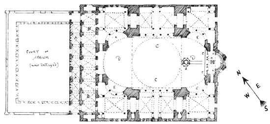 [54] Aedif. I. i.—The translation here used is that of Mr Aubrey Stewart, published by the Palestine Pilgrims' Text Society, with alterations by the late Mr Harold Swainson, as published in the admirable work of Mr W. R. Lethaby and himself, Sancta Sophia, Constantinople, a Study of Byzantine Building, 1894 (pp. 24-29). Messrs Lethaby and Swainson insert explanatory divisions of the description, thus 'The Apse,' etc. I have inserted the Greek words where they have transliterated them, and made an occasional slight alteration. The value of Messrs Lethaby and Swainson's work as an architectural translation is great.