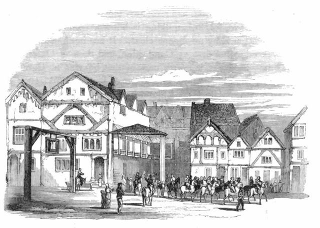 We learn from Speght, who appears to have been inquisitive about this inn in 1597, that "this was the hostelry where Chaucer and the other pilgrims met together, and with Henry Bailey, their host, accorded about the manner of their journey to Canterbury." Within the gallery was a large table, said to be the one where the pilgrims were entertained. It is now divided into four bed-rooms, where the guests of the inn still sleep, on the very floor occupied by[Pg 11] the pilgrims upward of 500 years ago. And, indeed, how much longer? The building existed probably long before Chaucer's days, who has been dead 446 years. It is one of the greatest antiquities and curiosities of London, so few of the like kind being spared by the fire, and still fewer by modern changes and improvements.