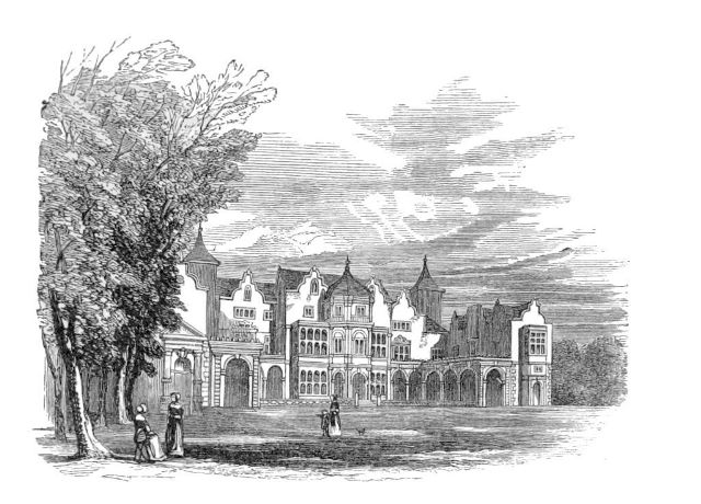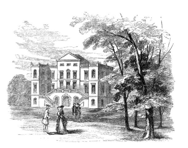 We went then to the house where Byron's mother lived. It is at the opposite end of the town, or village. It is called Burgage Manor, and stands on the top of a sloping green, called Burgage Green, very pleasantly, and at the back looking over a pleasant stretch of country toward Farnsfield. The house is a good, large, and pleasant house, but has, it seems, been considerably enlarged since Mrs. Byron lived in it; in fact, another half built to it in front. Unluckily, the lady who now inhabits it was absent too, so that we could learn nothing particular about it. It was undergoing painting, and we entered it, and walked about the lower rooms, which are just good, pleasant, modern rooms. The hall has a number of middling portraits,[Pg 554] apparently belonging to the lady's family. A Mary Childers; several ladies of the name of Mace, a Rev. Jackson, without a Mr., a John, or Thomas to his name; just thus—Rev. Jackson, a sandy-haired, schoolmaster-looking man, leaning on his elbow, and apparently trying to look very full of calculation. One picture was very funny. It was that of a little girl of about five or six years old, in an old-fashioned dress, and her hair dressed in a very wiggish fashion, and apparently powdered. She occupied the center of the picture, and stood facing you, and on each hand a white rabbit was partly rearing up and looking at her, and under the three figures stood their names—Mary Mace, Mary Burton, and Mary Beecher. No doubt there was some story connected with them. I suppose Mary Mace and Mary Beecher were play-fellows of the little girl, and that she had called her two white rabbits after them.