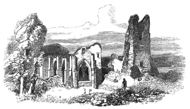 Of Donnington Castle in its present state a few more words may be acceptable, and this is the account we find given by Mr. Britton, in the Beauties of England and Wales. "Donnington Castle rears its lofty head above the remains of the venerable oaks that once surrounded it, on an eminence northeast of Donnington Grove, and nearly opposite to the village of Speen, now Newbury. It was formerly a place of much importance, and, by commanding the western road, gave to its possessors a considerable degree of authority. When it was originally built is uncertain, but, from a manuscript preserved in the Cottonian Library, it appears that it belonged to Walter Abberbury, who paid C. shillings for it to the king. Hither, about 1397, in the 70th year of his age, Geoffrey Chaucer, who had purchased it, retired. Alice, his granddaughter, conveyed it by marriage to William de la Pole, duke of Suffolk." In this line, and, therefore, in the descendants of Chaucer, it continued till the reign of Henry VII., when, by the treasonable practices of the owner, it was escheated to the crown. In the civil wars it was a post of great consequence, being fortified as a garrison for the king. During these troubles it was twice besieged; the second time its siege being raised by the arrival of the king himself. In Camden's[Pg 9] time this castle was entire. He describes it as "a small but very neat place, seated on the brow of a woody hill, having a fine prospect, lighted by windows on every side." The remains now consist of the east entrance, with its two round towers, and a small part of the east wall. The gateway is in good preservation, and the place for the portcullis may still be seen. A staircase winds up the south tower to the summit of the castle, which commands a beautiful view of the Hampshire Hills and the intermediate country.