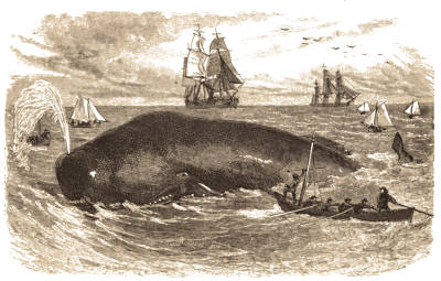 The last whale! How many pleasant recollections are associated with this landmark in the voyage! How many congratulations were exchanged among us, and how many smart things said! Sweethearts and wives are especially remembered, for both married and single are in high feather, and this is emphatically a red-letter day in the Arethusa's calendar. The work of cutting goes bravely on, amid a running fire of good-natured remarks and spicy jokes, which, of course, between the regular "natives" bear something of a personal character; for every true knight of the island chivalry in those days had his "ladie-love," whose image, held in fond remembrance, fired his heart and nerved his arm in his perilous encounters with leviathan. Each of our Nantucketers, on occasions like this, called to mind some fair face and form, his life-partner, either in esse or in posse; all had either wives to maintain or wives to obtain. The captain himself is not slow to take part in this badinage, for we are cutting the last whale now, and it is a time to waive the little restraints of rank.